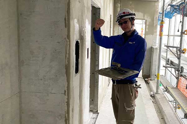 RC構造コンクリート面にモルタル・補修材を左官で塗上げ、仕上げる工事です。又、コンクリート工事に関しましては、コンクリートの表面を撫で上げ仕上げる工事です。とても奥深い匠な技術力が必要です。その他、漆喰・珪藻土・ジョリパッド・打放補修仕上げ等様々なバリエーションがあります。